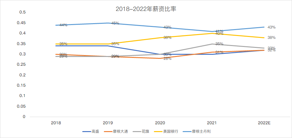 不过必须承认,2022年全球投行的薪酬比率可能会进一步上升,今年美国大银行将在薪酬和福利上增加支出,因为通胀压力、疫情风险和劳动力市场紧张迫使其不得不提高薪资,才能招到和留住员工。投行间的人才争夺战不会停止,尤其是面对新金融科技公司的竞争压力之下,人力成本越来月成为是不可忽视的因素。