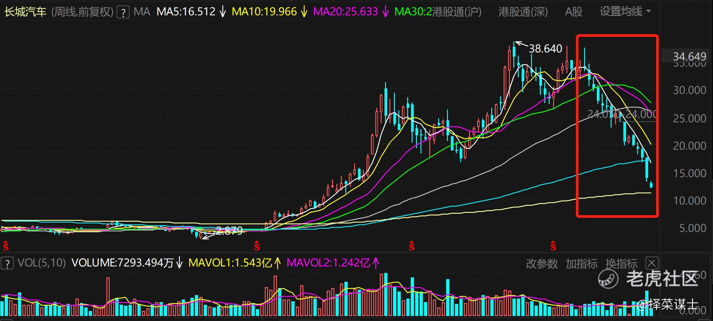 看长城汽车的周线,感觉呼吸都困难了,这是怎么样的飞流直下三千尺,一根接一根的阴线,数都数不过来了,短期暴跌70%,这也充分暴露了港股炒作市场的本质,除了极少数极少数公司能长期走牛,大部分都是怎么来,怎么去,眼看起高楼,眼看他宴宾客,眼看他楼塌了。