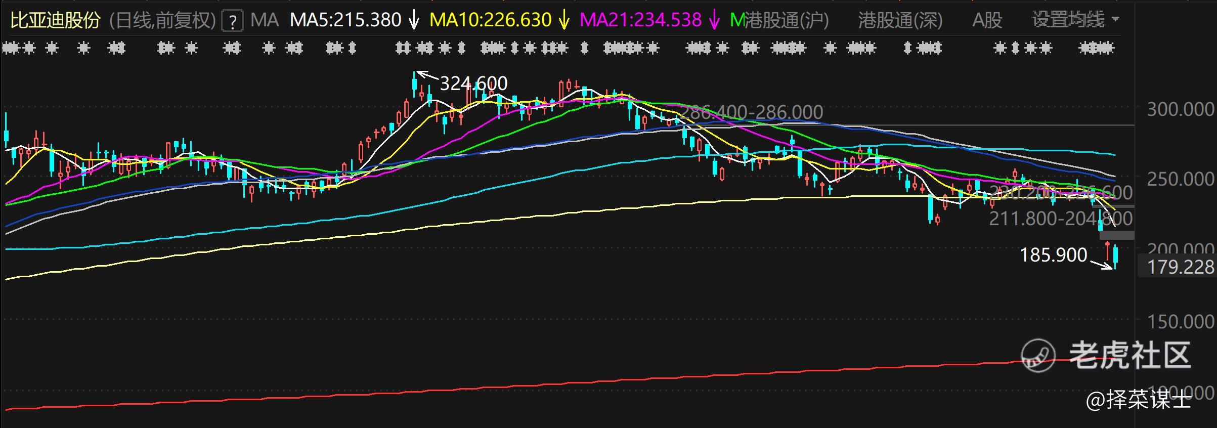 甚至最坚挺的比亚迪股份,也扛不住了,近几个交易日,跌破年线以后暴跌。
