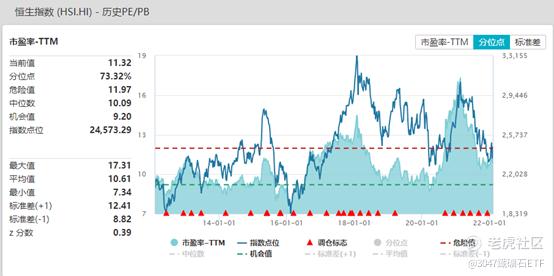 用25%分位數分析,恆生科技指數較恆生指數貼近機會值;比現在市盈率低的時候也不是很多,值博率較高。