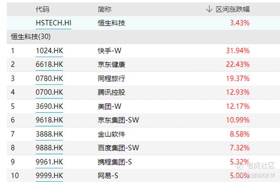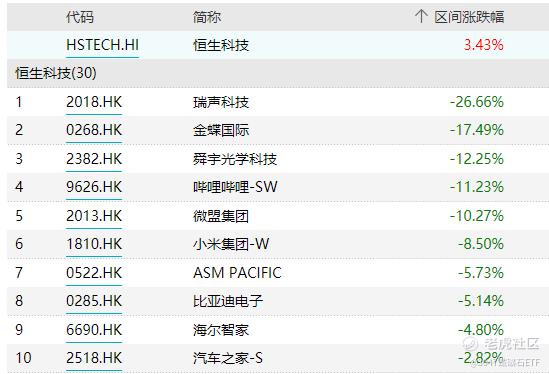 恒生科技 (HSTECH.HI) - 成分表現排名