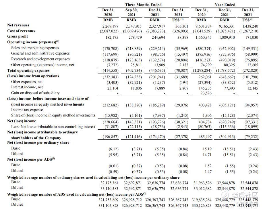 在第四季度,斗鱼共实现营收约23.78亿元,同比增长2.6%,净亏损约1.93亿元,2020年同期亏损约2.29亿元,2021年Q3净亏损约1.43亿元。