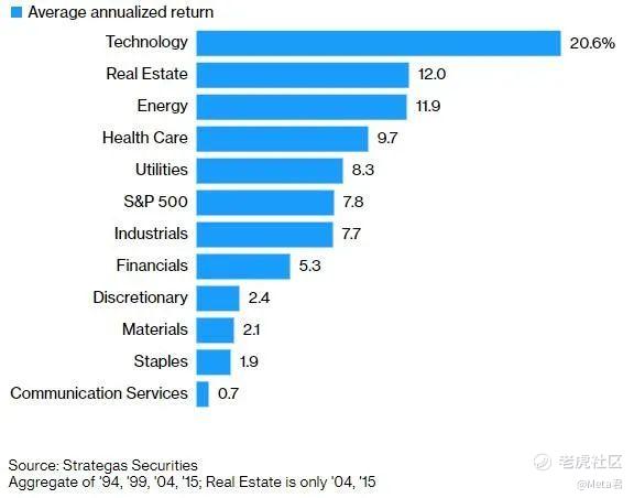 数据还显示出,每个周期领涨板块各不相同,这四个周期中没有哪一个板块一直表现突出,除了明显的科技股领先以外,其他板块的表现更多的取决于当时的经济状况。