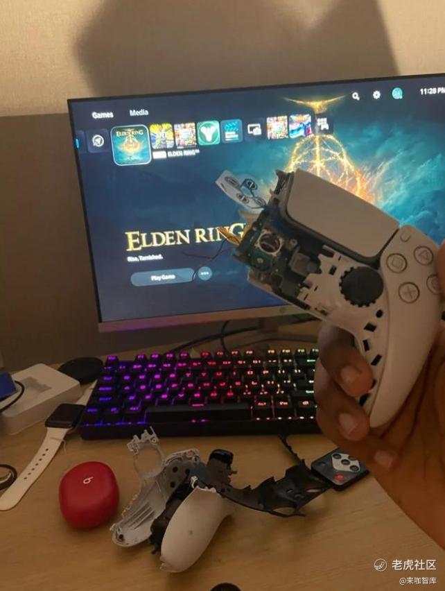 与宫崎英高的前几作相比,该作难度其实有所降低,但新玩家却不这么想,他们还是觉得游戏太难了。近日一位国外老哥就感觉游戏太难,过于沮丧进而狂暴起来,把PS5手柄砸烂以发泄愤怒。此前就有国外网友在Reddit论坛上贴出照片,展示了被砸成两半的PS5手柄。