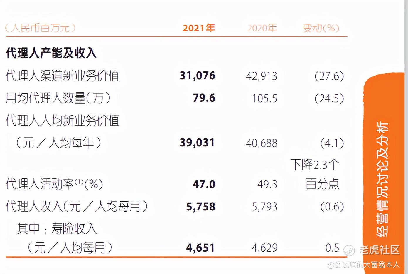 再看数据,2021年代理人人均首年保费同比增长超22%,产能有效提升。钻石队伍方面,2021年钻石队伍人均首年保费是整体队伍的4-6倍,收入约为社会职工平均工资水平的4-5倍。