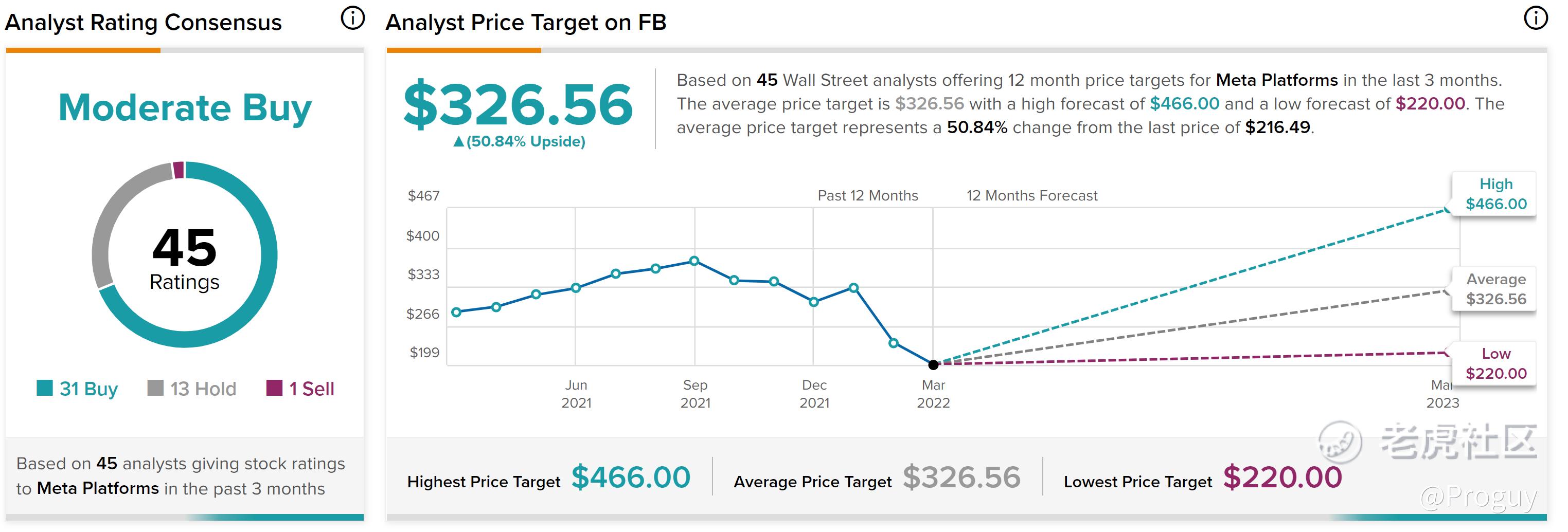 The discount rate was calculated using a WACC of 10.08%, with the cost of equity derived from the CAPM equation and an after-tax cost of debt to be zero percent. Using my Free Cash Flow projections from 2022-206, I used a 5-year DCF model to calculate the intrinsic value of Meta's shares today. Terminal value was calculated using an EV/EBITDA multiple of 15x which was adjusted downwards from its mean (19x) due to risks in the Metaverse which I highlighted earlier on. The intrinsic value of Meta's shares was found to be $230 or 6% higher than what it is currently trading at $207. In comparison, analysts on TipRanks have an average price target of $326 on Meta with 31 buy, 13 hold and 1 sell ratings