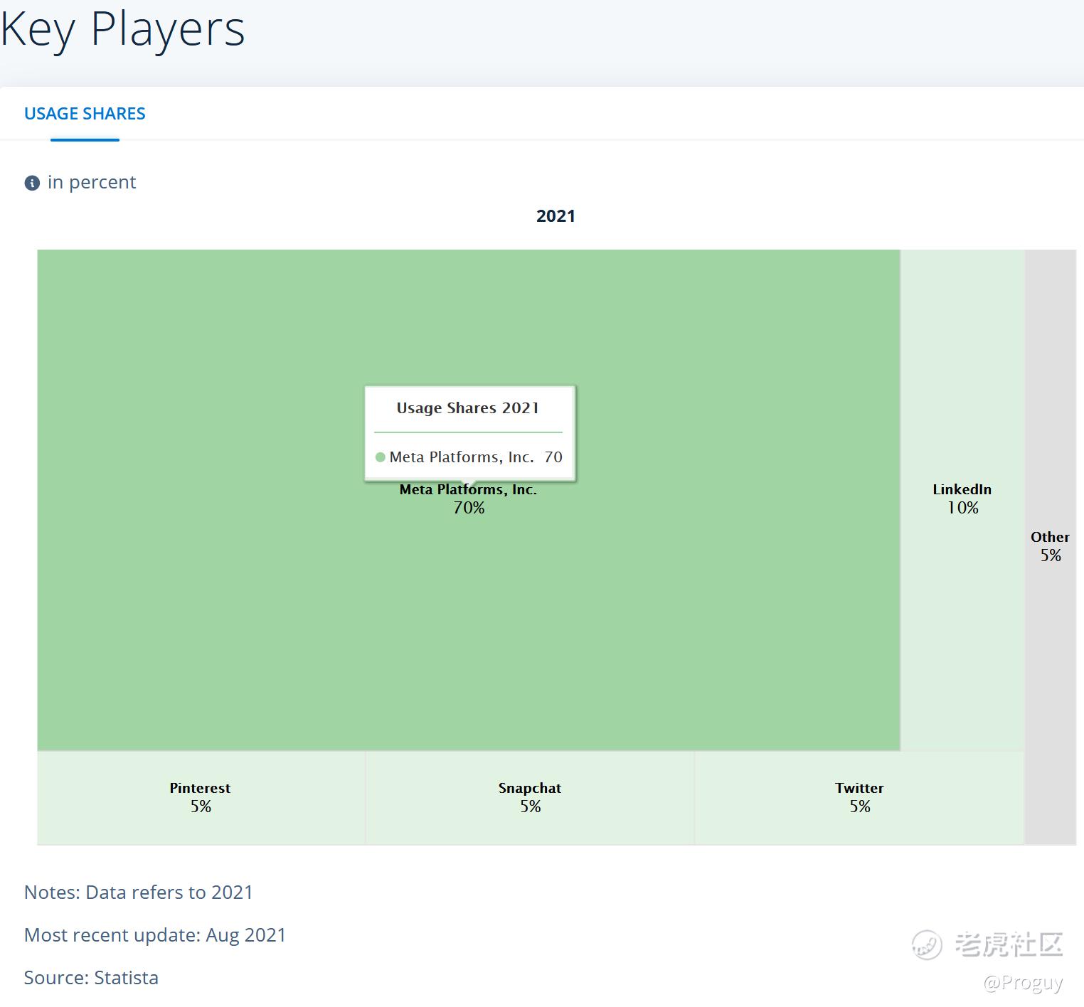 Meta operates in the digital advertising industry which has grown into one of the most important forms of advertising due to rising internet penetration rates and the popularity of social media sites such as Facebook and Instagram. Social media advertising spending worldwide which includes both desktop and mobile devices is expected to reach US $63 million in 2022 and is expected to grow at a CAGR of 8.80% to US$88.3 million in 2024. Meta currently has a 70% market share in terms of social media usage and its main rivals are Pinterest, Snapchat, Microsoft (LinkedIn) and TikTok with 5-10% market share each.