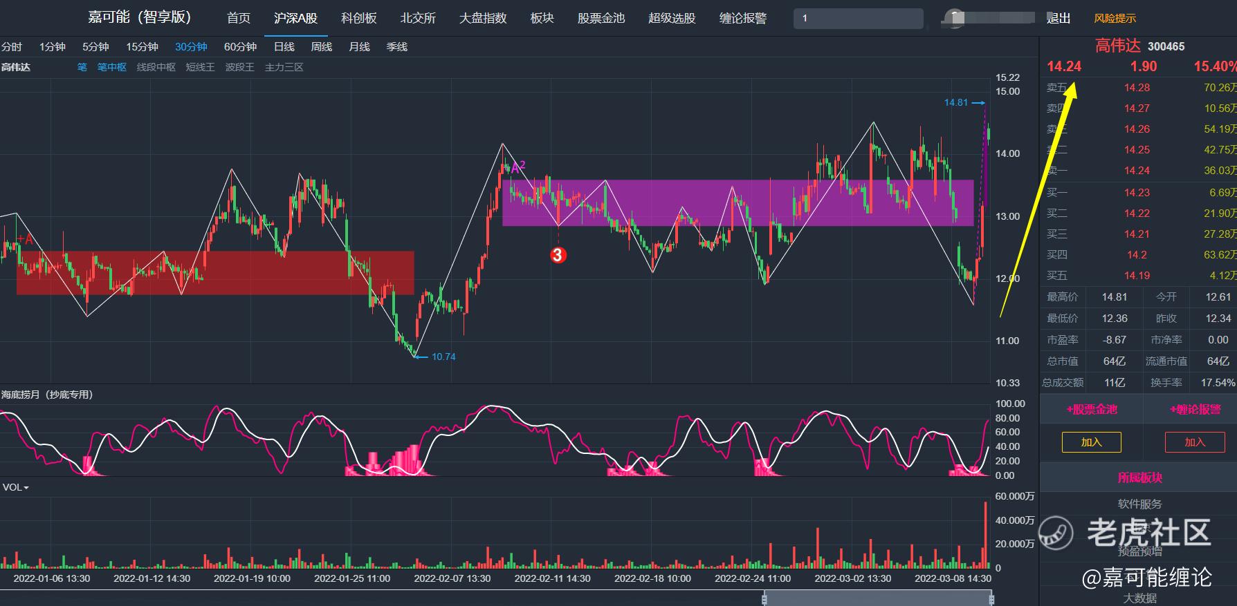 【嘉可能A股】紫色主力是一种神秘的上涨力量,遇到他,等着睡新高就行。缠论超级选股,抓涨停板就找紫色主力!紫色主力等于睡后新高!#立昂技术 #高伟达 #金种子酒