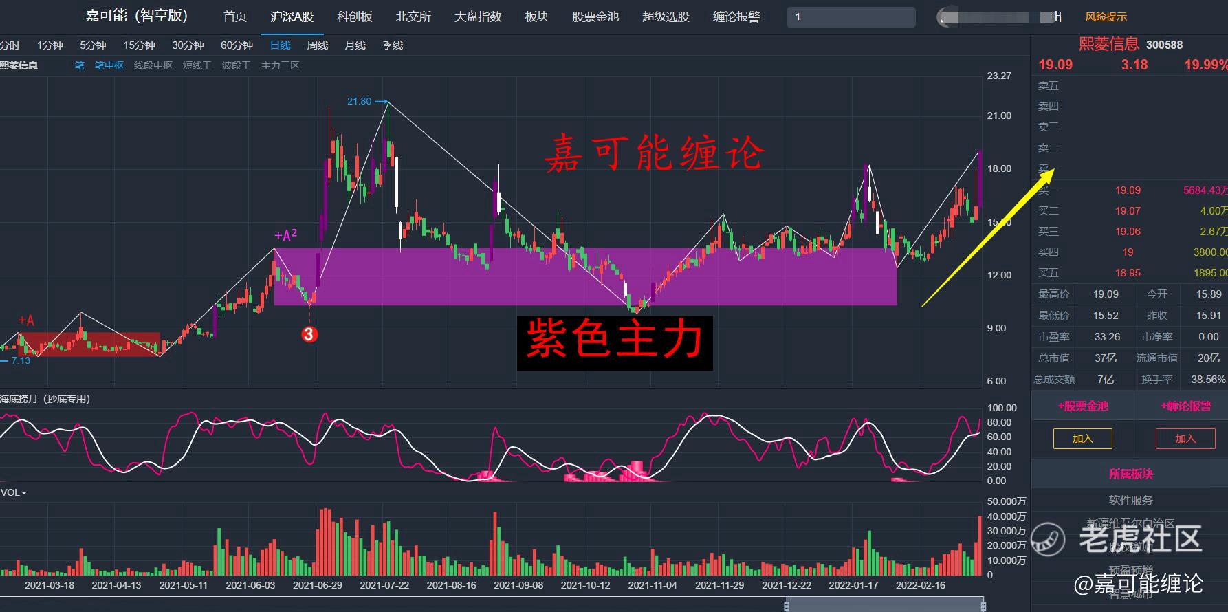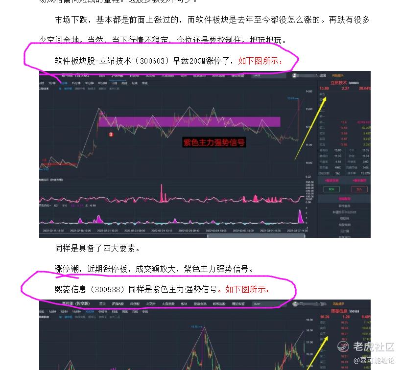 A股受外围市场影响,继续放量下跌。但是我们说的软件板块,再次逆势上涨。特别是昨天举例说明的,满足缠论短暂追涨打板的四大条件的,立昂技术(300603)、熙菱信息(300588),如下图所示: