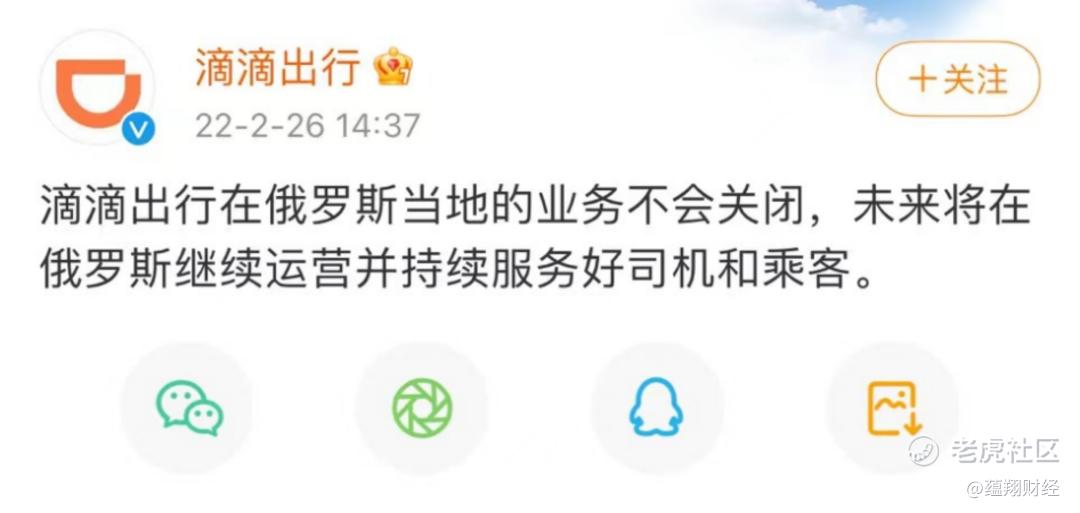 此外,2月21日,俄乌刚起摩擦时,俄罗斯媒体曾报道,滴滴驻俄罗斯和独联体公关总监Irina Guschina表示,该公司将从今年3月4日起停止在俄罗斯和哈萨克斯坦的业务。不过26日,滴滴又在微博表示:“滴滴出行在俄罗斯当地的业务不会关闭,未来将在俄罗斯继续运营并持续服务好司机和乘客。”