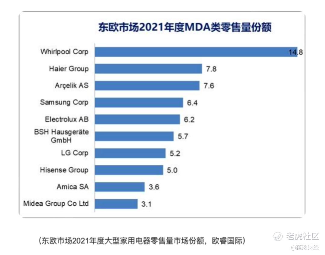 2020年,海尔智家海外厨电收入在俄罗斯市场2020年增幅达到83%,在东欧大家电市场整体下行的大环境下,海尔智家逆势增长,跃居市场第二。