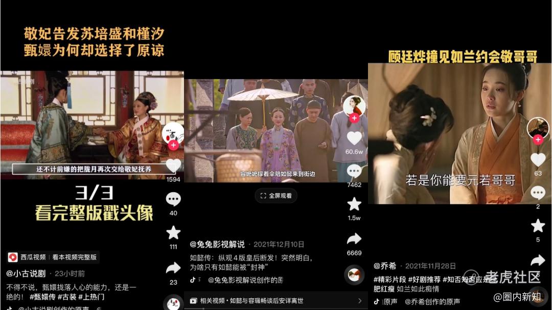 同时,字母榜曾在文章中分析,“去年整个长视频平台有超过2000部重点(S+或者S级)作品被盗版,侵权短视频数量在100多万以上。比如抖音上有个专门剪辑《甄嬛传》的账号,已经发布了232集内容,每个片段5-6分钟。”