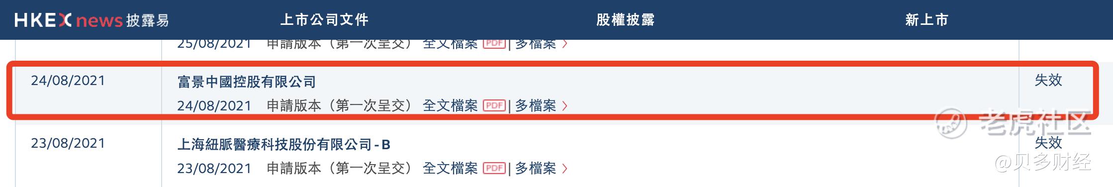 2月25日,贝多财经从港交所了解到,富景中国控股有限公司(下称“富景中国”或“富景农业”)递交的上市申请材料已自动“失效”,已无法正常查看。这意味着,富景农业冲刺港交所上市再度宣告折翼。