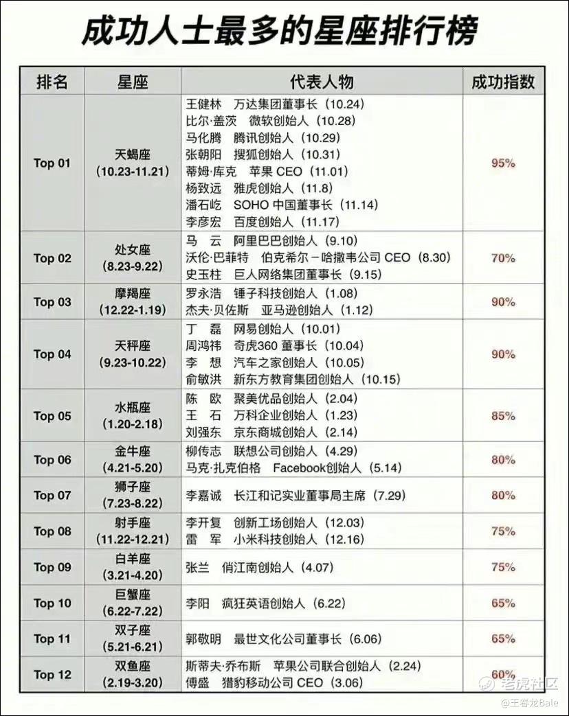 成功人士最多的星座排行榜:天蝎座成功指数95%,盖茨、马化腾、库克和李彦宏