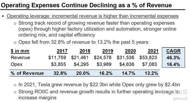 但这并不代表特斯拉的运营成本下降,而是运营成本的增长要远小于营业额的增长。