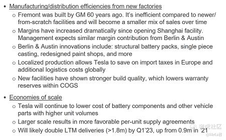 像上海工厂的利润率就要比Fremont高得多,上海工厂的利润率大概是毛利润40%左右,而Fermont工厂差不多在20%左右。