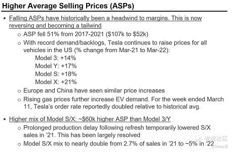 由于特斯拉的垂直整合,高机动性以及创新的能力,再加上特斯拉正处于一个非常高的需求状态下,也使得他们有一个非常强的定价权。