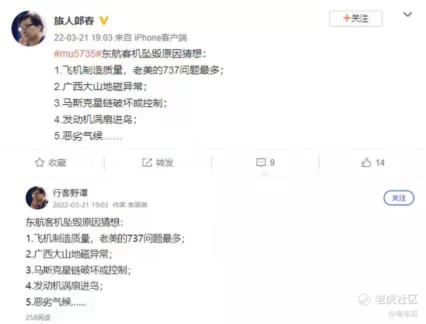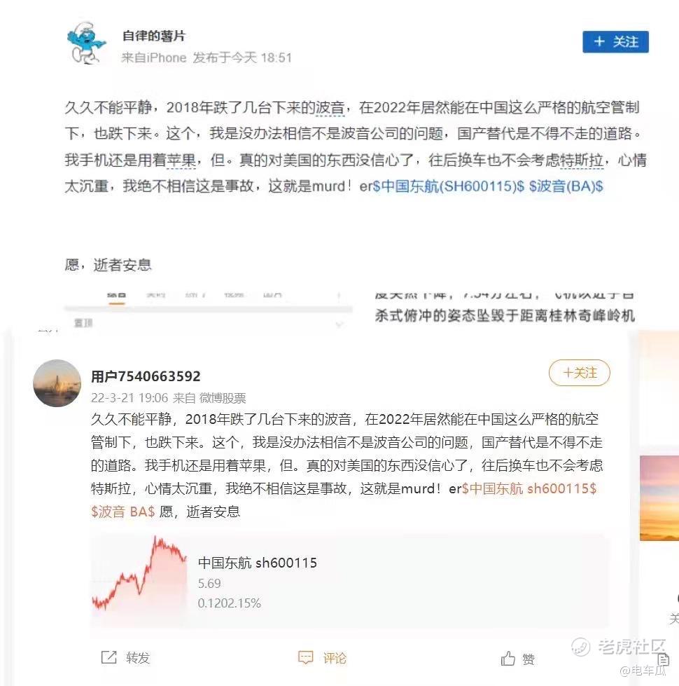 飞机失事本是一个悲剧,而利用悲剧去做“黑公关”的无良企业早已丧失了道德底线,这是对逝者的亵渎,更是对法律的无视。广大网友也应该学会明辨是非,不信谣、不传谣,支持有关部门的搜救工作,避免谣言占用公共资源,给遇难同胞和家属最基本的尊重。$特斯拉(TSLA)$