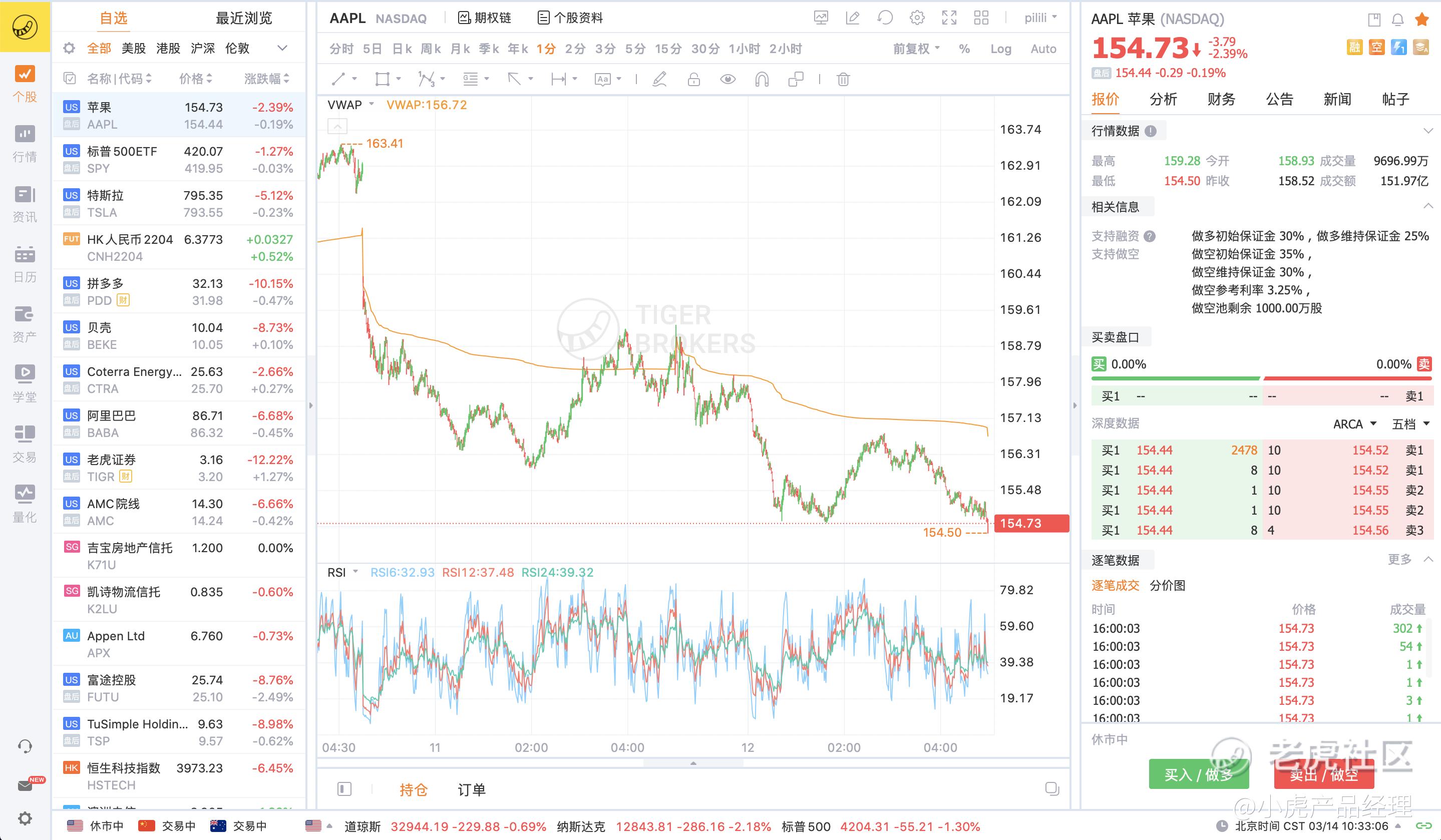 对于美股、港股、星股、澳股、伦敦市场的股票品种,增加1min、2min、3min、5min等分钟级别的VWAP主图指标,在主图指标上切换即可看到,为日内交易提供参考。