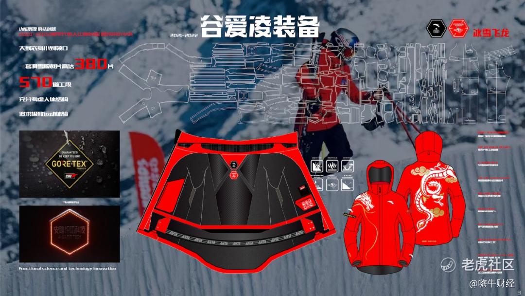 在北京冬奥会上,天才少女的谷爱凌摘得2金1银,用实力和完美表现迅速出圈,成为了顶流。和谷爱凌一同出圈的还有其身穿的战袍,这是安踏为谷爱凌量身定制的滑雪服,全身380片裁片,配备570道完整工序。采用轻、薄、耐用的面料,兼具防水、透气和防风功能,有助于运动员在大风寒冷的环境下保持最佳的身体状态。