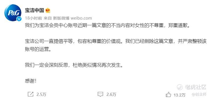 宝洁就公众号发布侮辱女性文案一事道歉