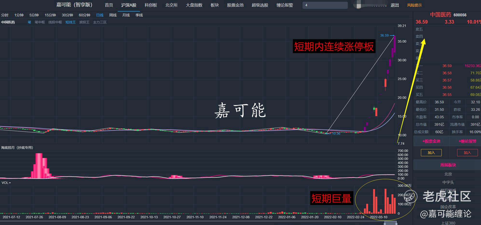 换而言之,对于医药板块近期已经连续涨停板,并且短期内涨幅不菲的个股需要注意了。末期追涨容易被套在顶部。错过的最好等缩量回调后再次介入。