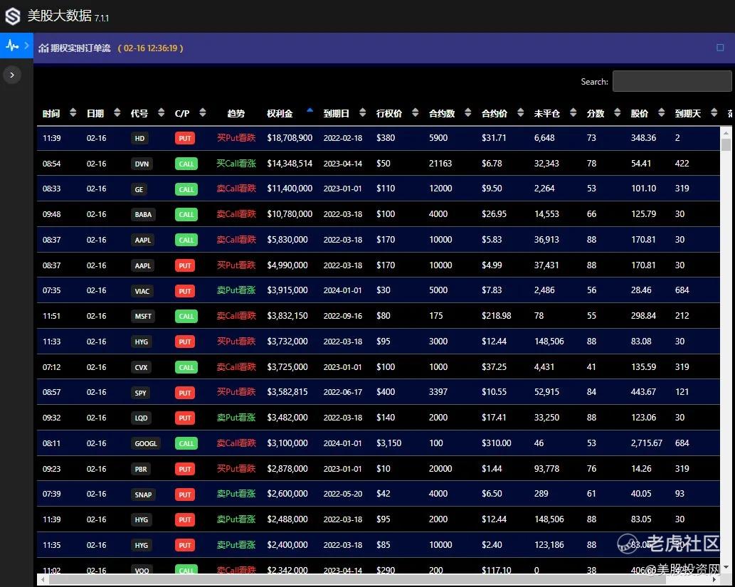 美股大数据StockWe 今日期权异动扫描 2022-02-16