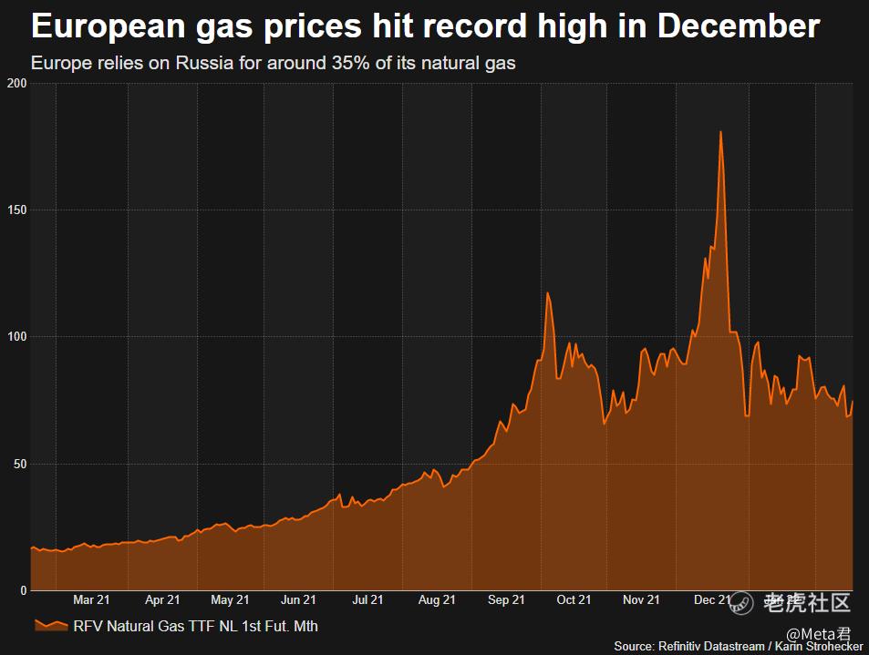 由于2020年疫情封锁的原因,从俄罗斯输往欧洲的天然气数量减少,去年在消费量激增的情况下也没有完全恢复,导致天然气的价格一度上涨至记录高位。
