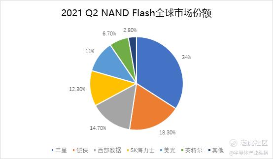 英特尔NAND Flash部门在2021年下半年被SK海力士收购,收购结束之后,SK海力士的NAND Flash份额或将跃升第二位