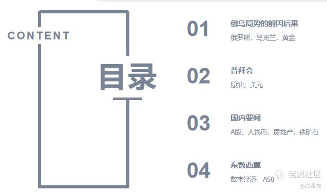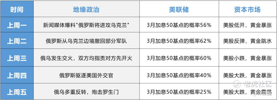 当然,我们可以用表格的方式进行数据统计,大家就可以更加清晰的看得出来,短期市场的焦点依然还在俄乌局势上: