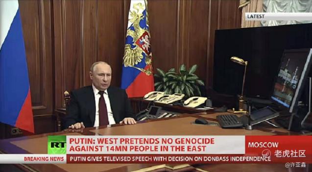 北京时间2022年2月22日凌晨两点(莫斯科晚上9点),俄罗斯联邦总统普京发表电视讲话,宣布将正式签署法令,承认乌克兰东部的顿涅茨克与卢甘斯克独立。这也意味着俄罗斯正式放弃《明斯克协议II》。