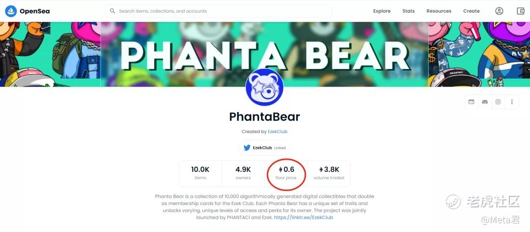 现在NFT交易平台Opensea上显示,目前一张Phanta Bear小熊图像的地板价已经涨到了0.6枚以太币。