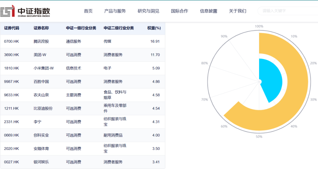 从中证指数公司公布的指数权重股,在3月10日的所在一级行业来看,可选消费、通讯服务、主要消费和信息技术均有涉及。