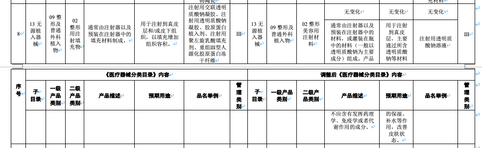 国家药监局对注射到人体的产品一直有严格的管理,明确规定注射用透明质酸钠、胶原蛋白植入剂、聚左旋乳酸填充剂、胶原蛋白动感纤维都是作为三类植入医疗器械管理。