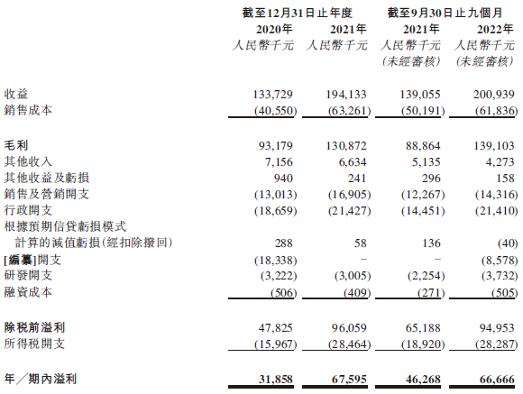 财务数据显示,在过去的2020年、2021年和2022年前九个月,泰丰文化的营业收入分别为1.34亿 、1.94亿 和2.01亿人民币,相应的净利润分别为3,185.8万、6,759.5万和6,666.6万人民币。