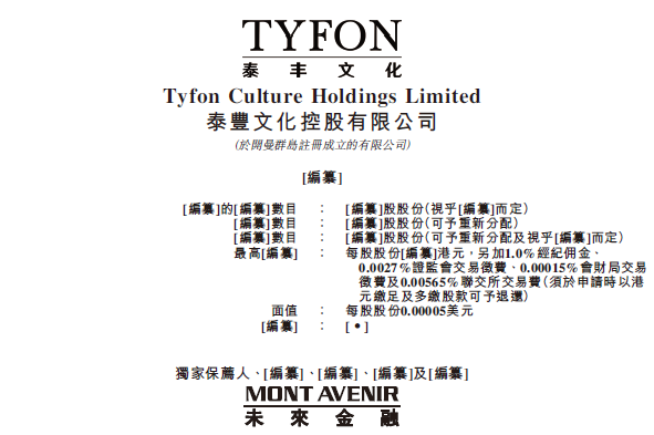 2023年2月1日,来自江苏苏州的泰丰文化控股有限公司 Tyfon Culture Holdings Limited(以下简称"泰丰文化") 再次向港交所递交招股书,拟在香港主板挂牌上市。这是继其于2020年6月30日递表失效后的再一次申请。