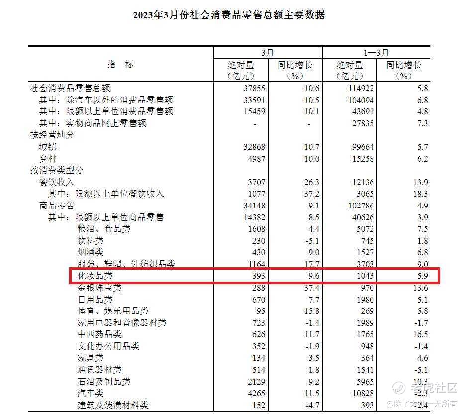 近日,国家统计局公布2023年3月份社会消费品零售数据。其中,化妆品类2023年3月零售总额为393亿元,同比增长9.6%。1-3月份, 化妆品类零售总额为1043亿元,同比增长5.9%。美妆行业显著回暖,作为美妆运营的头部企业,上海丽人丽妆化妆品股份有限公司(605136.SH)长期深耕天猫平台、同时持续扩大以抖音为代表的新平台业务发展规模,不断夯实高效营销、精细化运营能力,助力合作品牌快速成长。