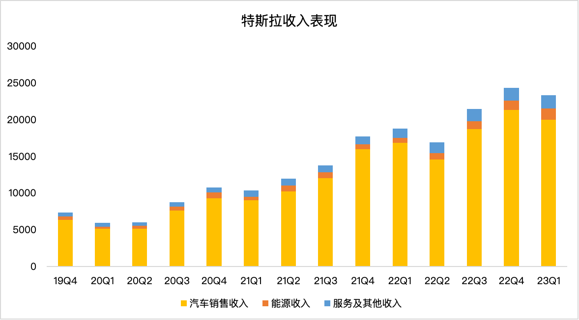 分业务来看,核心的汽车业务收入在一季度达到199.6亿美元,同比增18%、环比跌超6%;能源业务收入15.29亿美元,同比上涨148%,环比上升17%;服务及其他业务收入为18.37亿美元,同比上升44%,环比上升8%。
