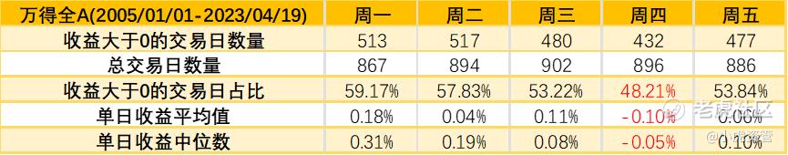 与美股的五月效应类似,在中国市场上,也有着一些“奇怪”的日历效应,其中最有名的当数“周四砸盘日”。由于中国A股实行T+1的交易方式,如果周末需要用钱,最晚周四就必须从股市中卖出,所以使得周四的卖压往往会比一周中的其他时间更大一些。从统计结果上看,周四的整体表现确实不如其他日期。