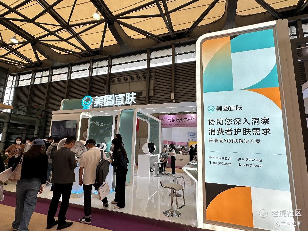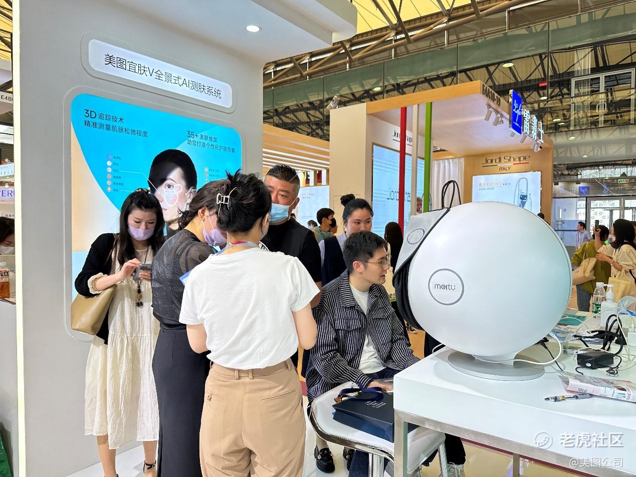 美图公司旗下科学测肤品牌美图宜肤亮相上海新国际博览中心E4B13展位,集中展示美图宜肤AI测肤产品,吸引大批客户驻足体验洽谈。