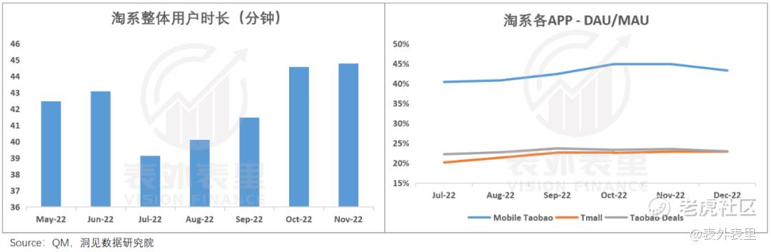 可以看到,2022H2之后,淘系APP的用户时长和用户粘性明显提振,似乎抵挡住了抖音、拼多多的抢食。