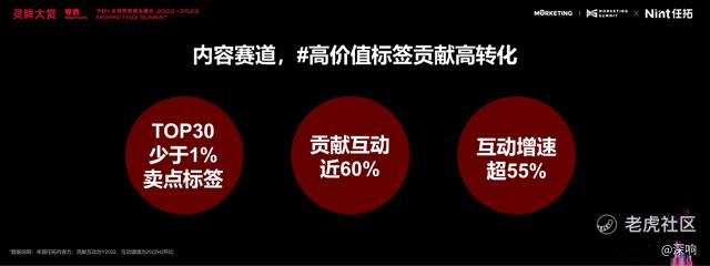从Nint任拓的数据上看,仅种草而言,不到1%的内容标签集中了60%的互动量,这些标签可以带来55%的互动增速。因此,通过内容标签找到确定性种草和转化高的内容,并对内容标签进行精细化运营是当下品牌在内容赛道中实现ROI增长的好方法。