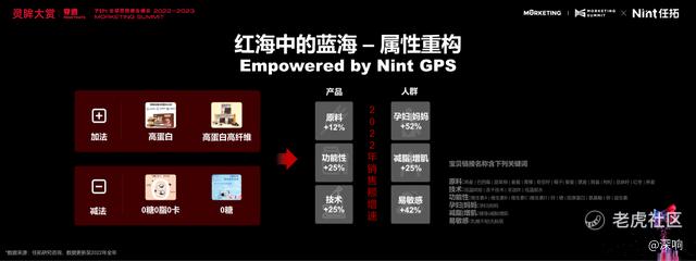将原有产品的属性进行叠加或者重组,可以形成新的细分赛道。以食品行业为例,来自Nint任拓的数据显示,2022年,在食品赛道中,组合了高蛋白、高纤维的传统功能属性,叠加低温烘焙、冻干等技术属性的产品增长超过25%,领跑赛道增长。