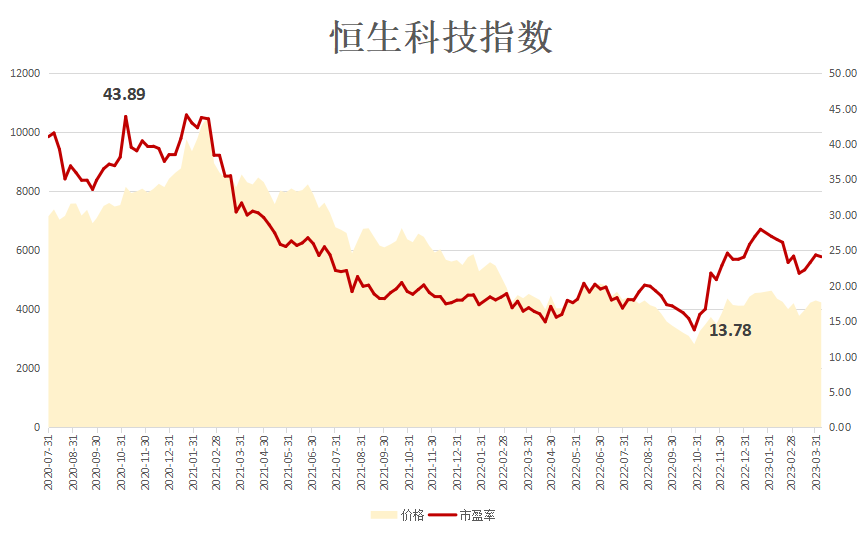从去年10月到今天,恒生科技指数从最低的2822点上涨到4237点,上涨幅度为50.14%。虽然已经上涨了50%,但离前面最高的10945点仍然有大于50%的距离,此时我们需要问的问题就是,恒生科技指数目前估值合理了吗?