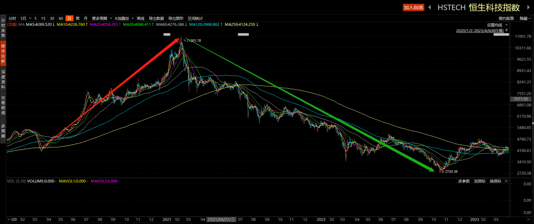 首先,我们先来简单复盘一下恒生科技指数近两年的走势,懂复盘才能懂当下。