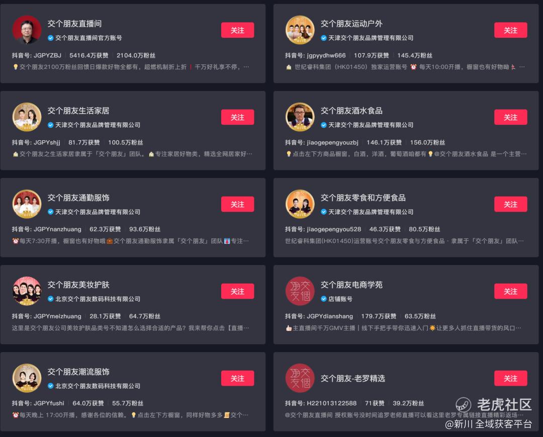罗永浩的交个朋友直播间,也是从个人IP出发,持续打造直播间的投放、转化,同时做好选品和供应链;然后再进一步去培养和拓展直播品类,并最终打造了十多个垂直品类的抖音矩阵号。