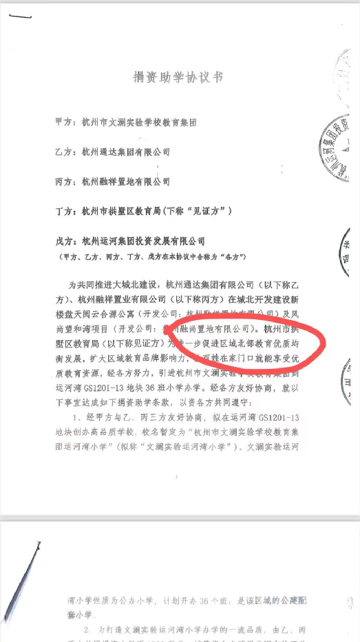 四,运河湾实验学校与融创双子星有捐资办学的协议,但公立学区划分不能为资本开道。