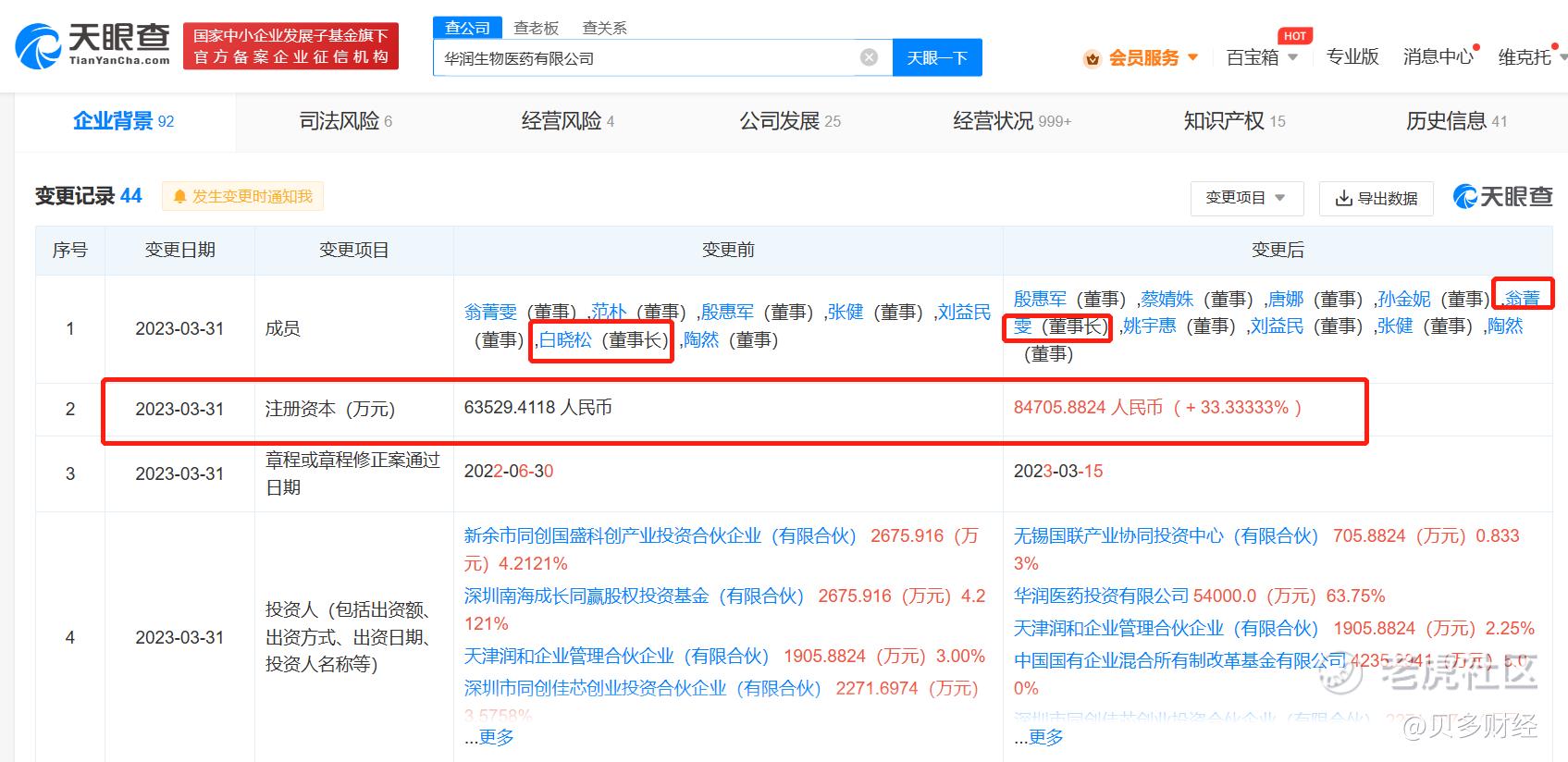 与此同时,华润生物的注册资本由约为人民币6.35亿元增至约8.47亿元,相对增长33.33%。另外,华润生物的多名董事发生变化,其中白晓松卸任华润生物董事长,由翁菁雯接任。同时,蔡婧姝、唐娜、孙金妮、姚宇惠新增为董事,范朴不再是董事。