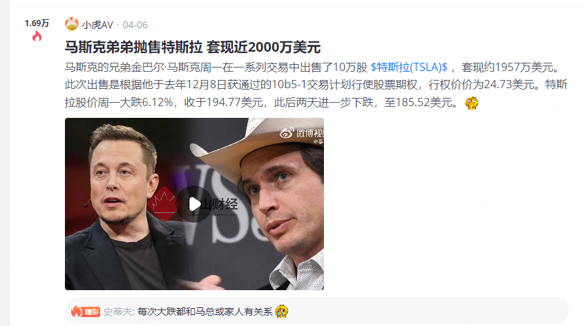 “不会马斯克兄弟俩又在偷偷卖吧”