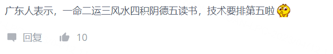 也有广东虎友表示“一命二运三风水四积阴德五读书”,技术只能排在末尾啦。有没有其他的广东虎友现身说法一下,真的是这样吗,我读书少你别骗我[正经]